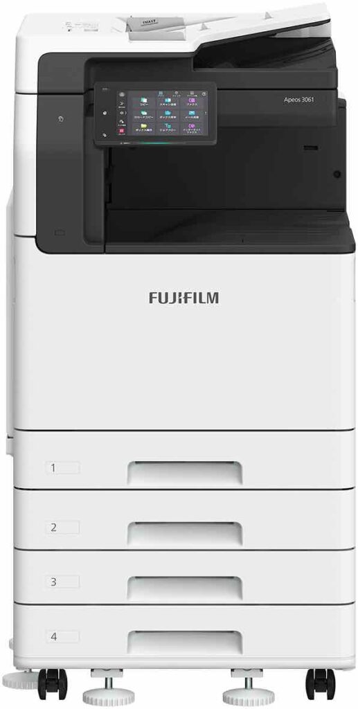 新製品は、連続複写速度(A4ヨコ)が30枚/分の「Apeos 3061」(標準価格税別128万6,000円〜)、25枚/分の「同2561」(同87万2,000円〜)、20枚/分の「同2061」(同77万7,000円〜)の3機種。